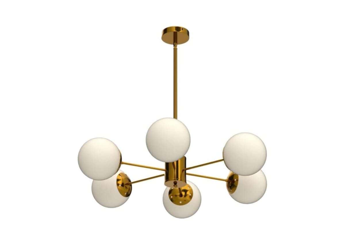 Features: This chandelier features multiple frosted glass globes branching out from a central brass fixture, embodying the mid-century modern style. KCO Lighting 6-Light Globe Sputnik Chandelier Milk Glass Modern Gold Chandelier Light Fixture Mid Century Sputnik Brushed Brass Ceiling Pendant Lighting for Living Room Dining Room(Gold+White)
