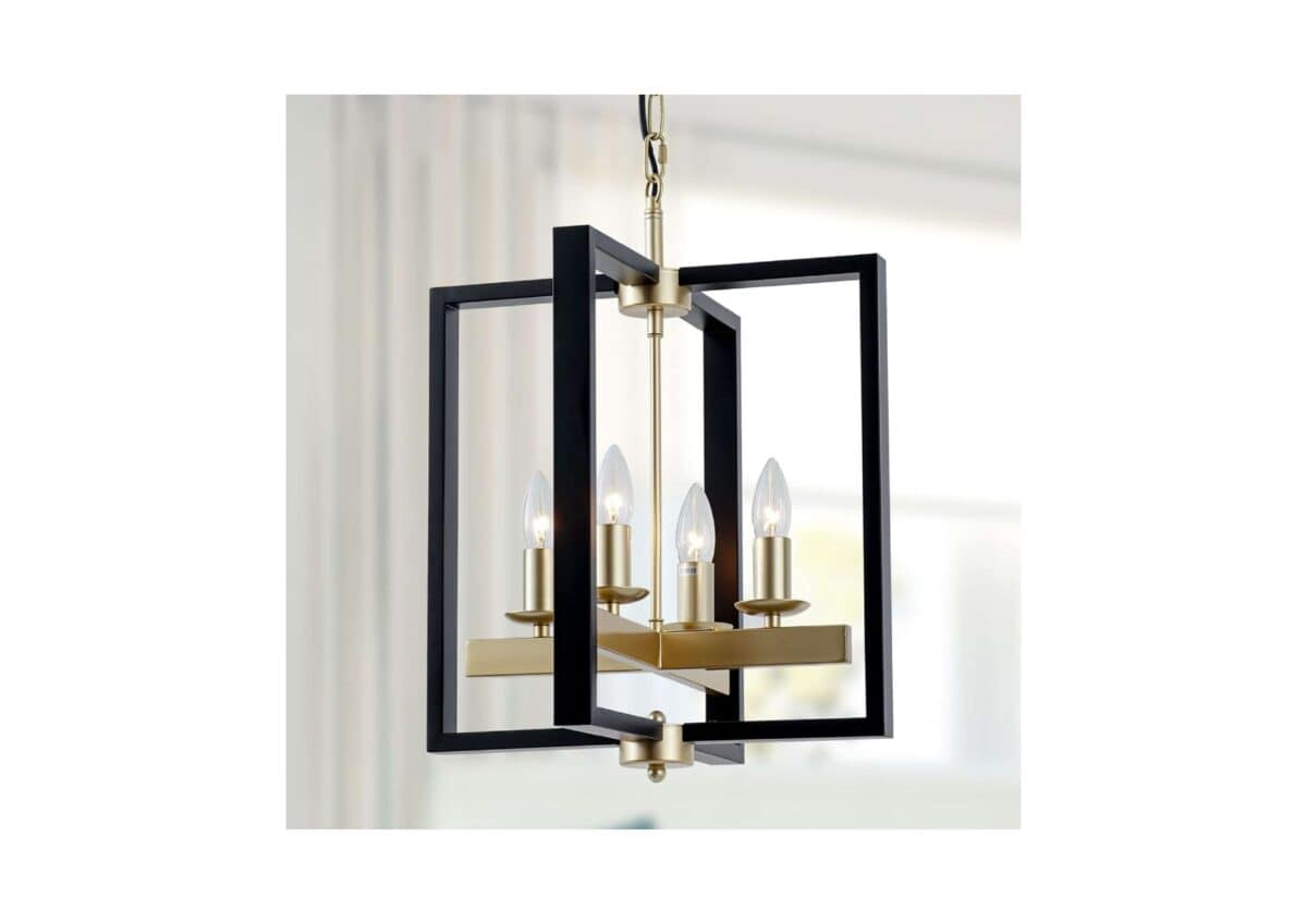 Features: Industrial Lantern Chandelier, 4-Light Modern Geometric Semi Flush Mount Ceiling Light Fixture, Black & Champagne Gold Farmhouse Pendant Lighting Fixtures for Living Room Kitchen Island Hallway Foyer.